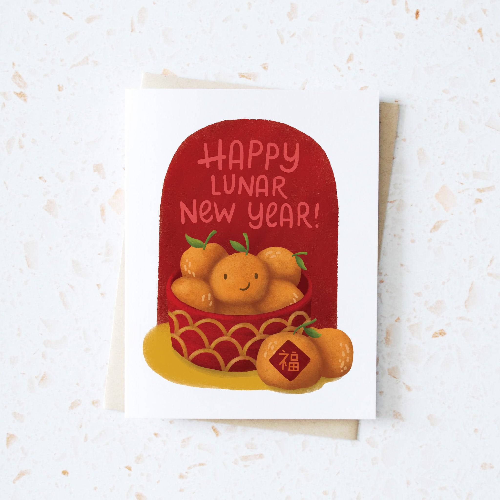 Brighten your Lunar New Year celebrations with this playful greeting card featuring classic oranges, a symbol of good luck, prosperity, and happiness in Asian tradition. Perfect as a New Year’s gift, it captures the joyful spirit and meaningful symbolism of the season, passing on good vibes and well wishes for the New Year.