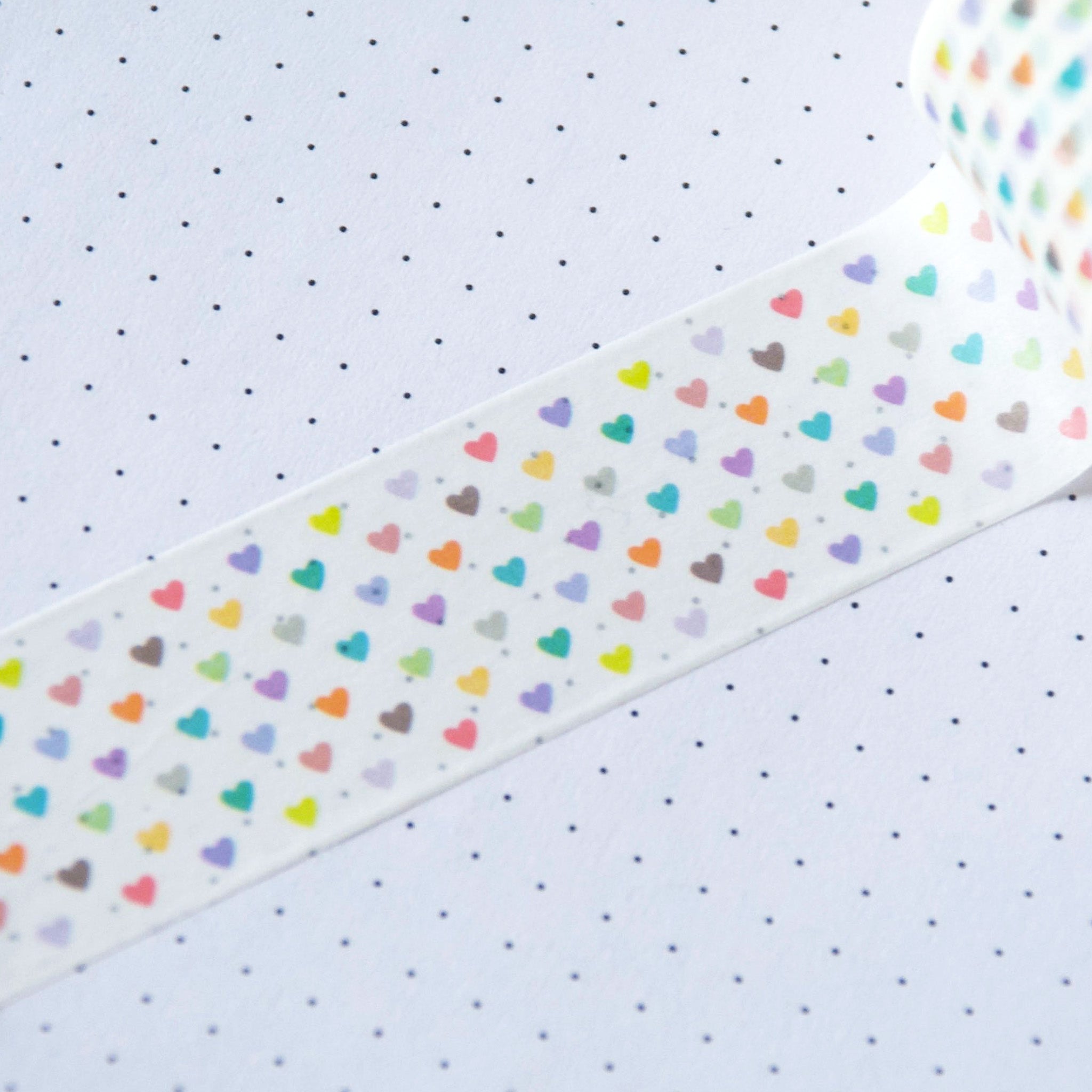 Brighten up your crafts with Little Rainbow Hearts 25mm wide Washi Tape. This playful Japanese tape features a charming pattern of cute, colorful hearts in a vibrant rainbow palette. Perfect for adding a sweet, kawaii touch to your journals, planners, and gifts, it’s a fun way to spread love and joy in every project.
